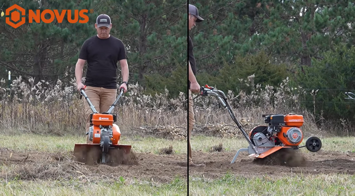 The NOVUS 18″ rear tine tiller is ideal for homeowners with large, open gardens looking for power and versatility.