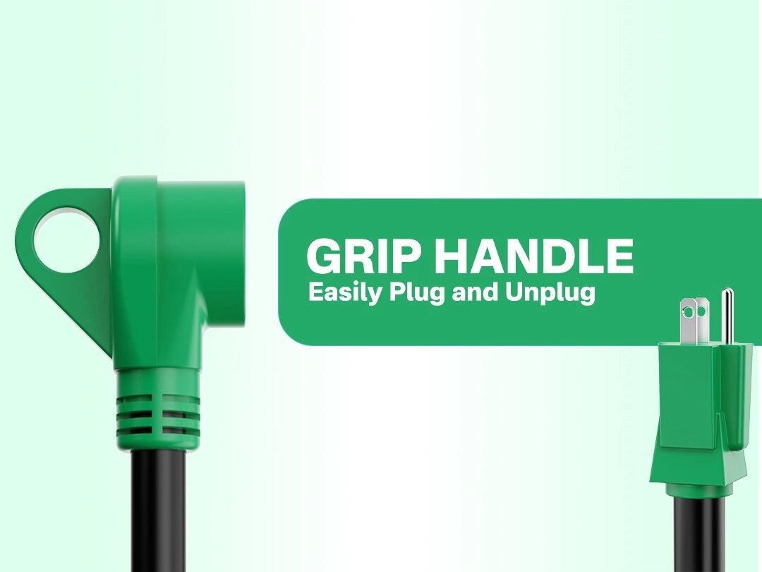 Built-in handle offers a secure, non-slip grip, making it easier to plug and unplug without damaging the connector or outlet.