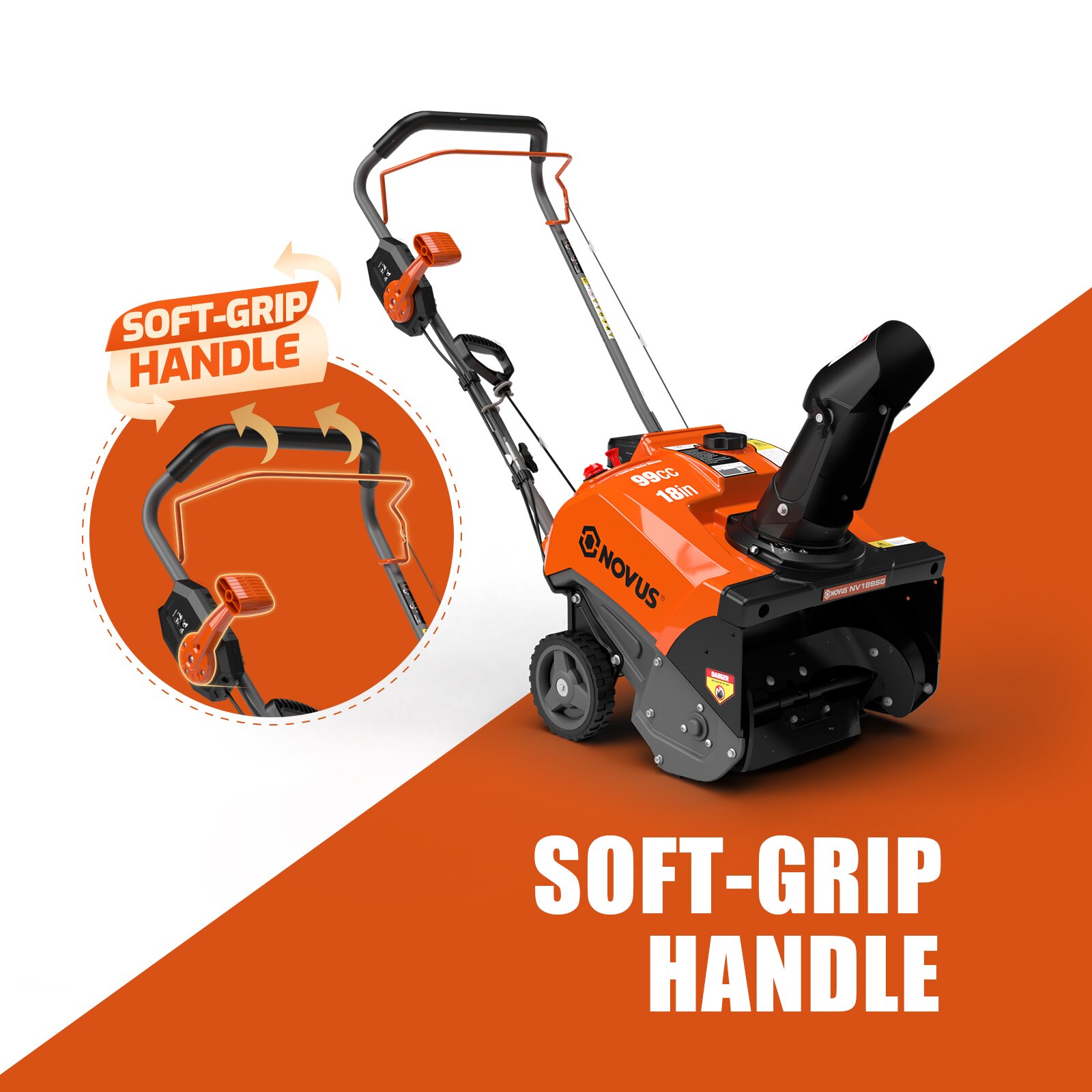 The soft-grip handle, designed for maximum comfort, provides a secure and comfortable grip, making the compact snow blower easy to use and control even during extended periods of operation.