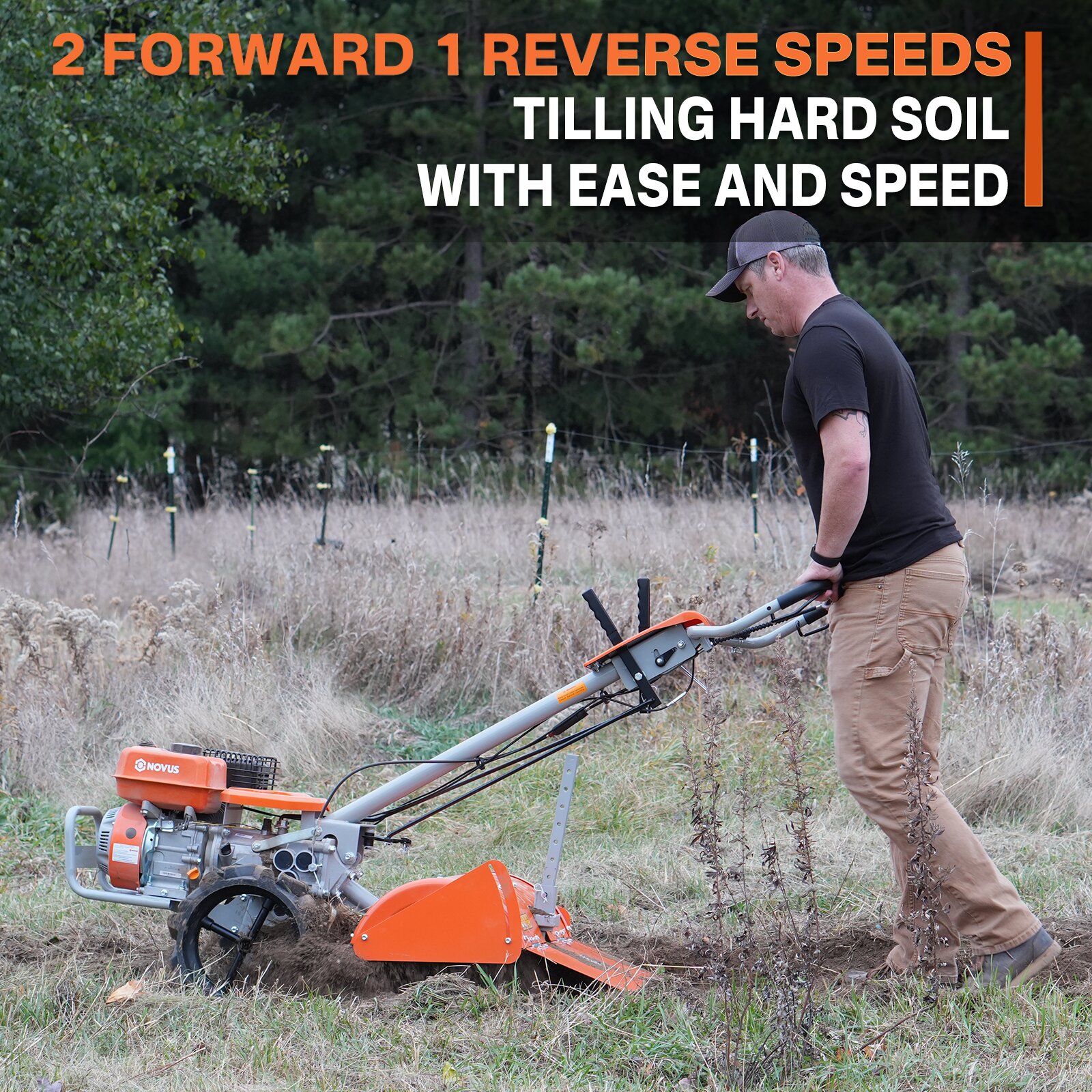 This NOVUS 18″ dual rotating rear tine tiller delivers the ultimate in tilling performance. With our exclusive full gear transmission no other machine on the market can compare.