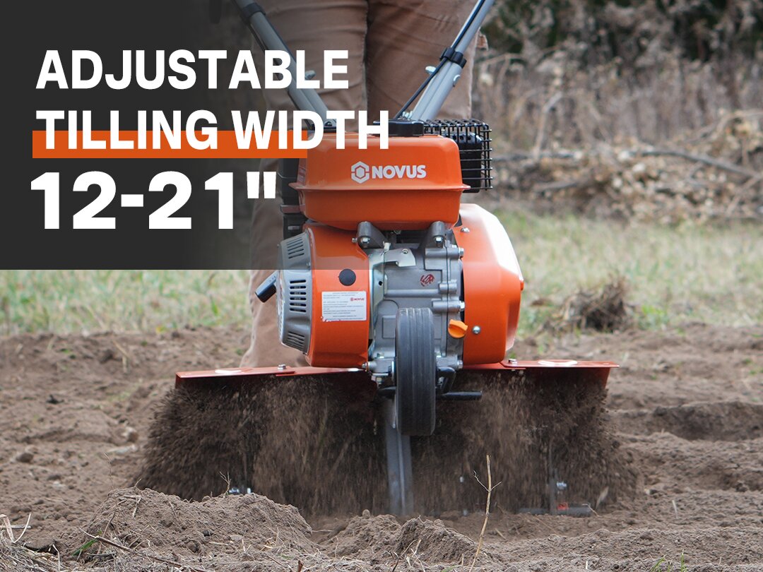 With adjustable tilling widths of 12 to 21 inches and a tilling depth of 6 to 8 inches, this gas tiller for gardening is perfect for preparing large flower beds, vegetable gardens, and weeding between rows.