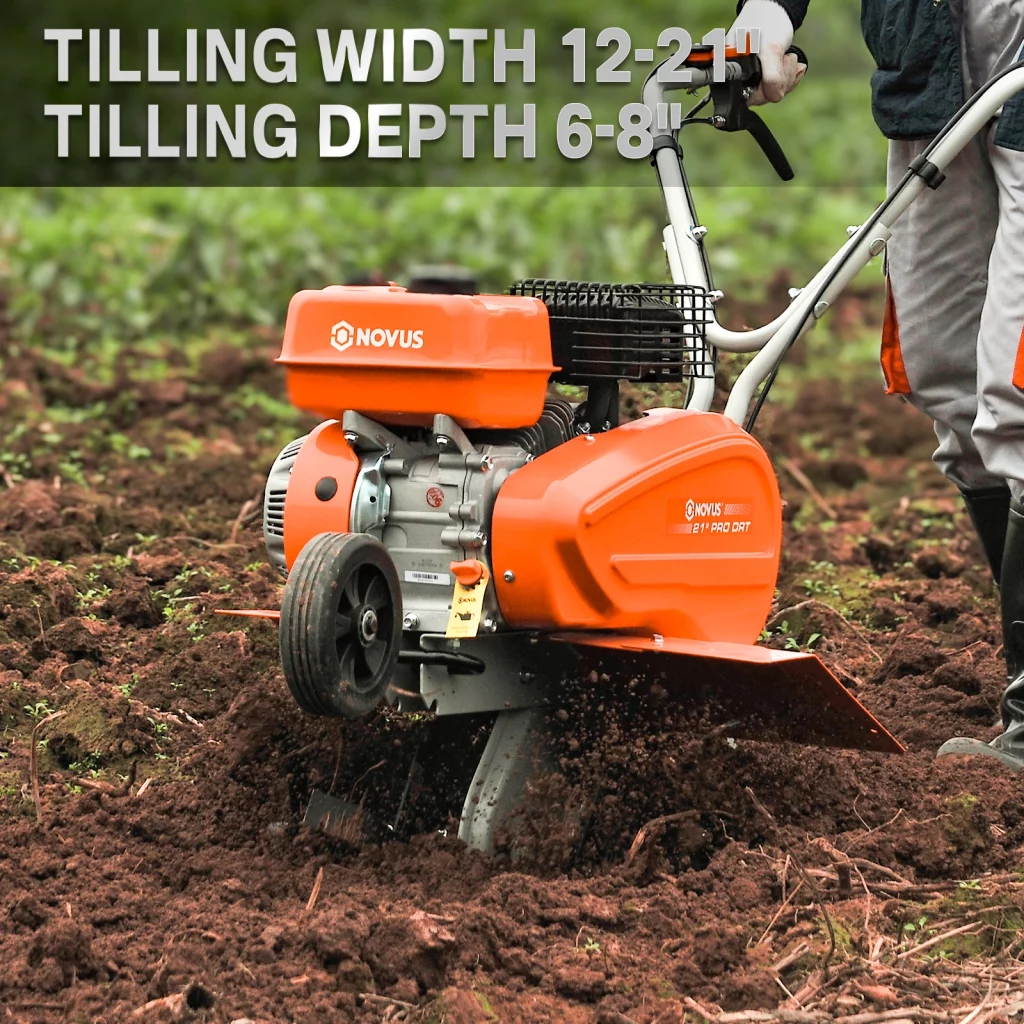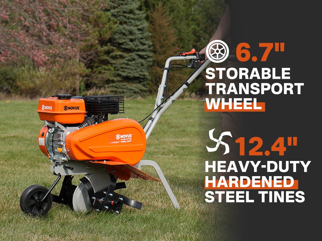 This NOVUS 21″ front tine tiller delivers the perfect balance of size and power to tackle your garden project. Whether you’re breaking new ground or tilling an existing garden, this machine will get the job done.