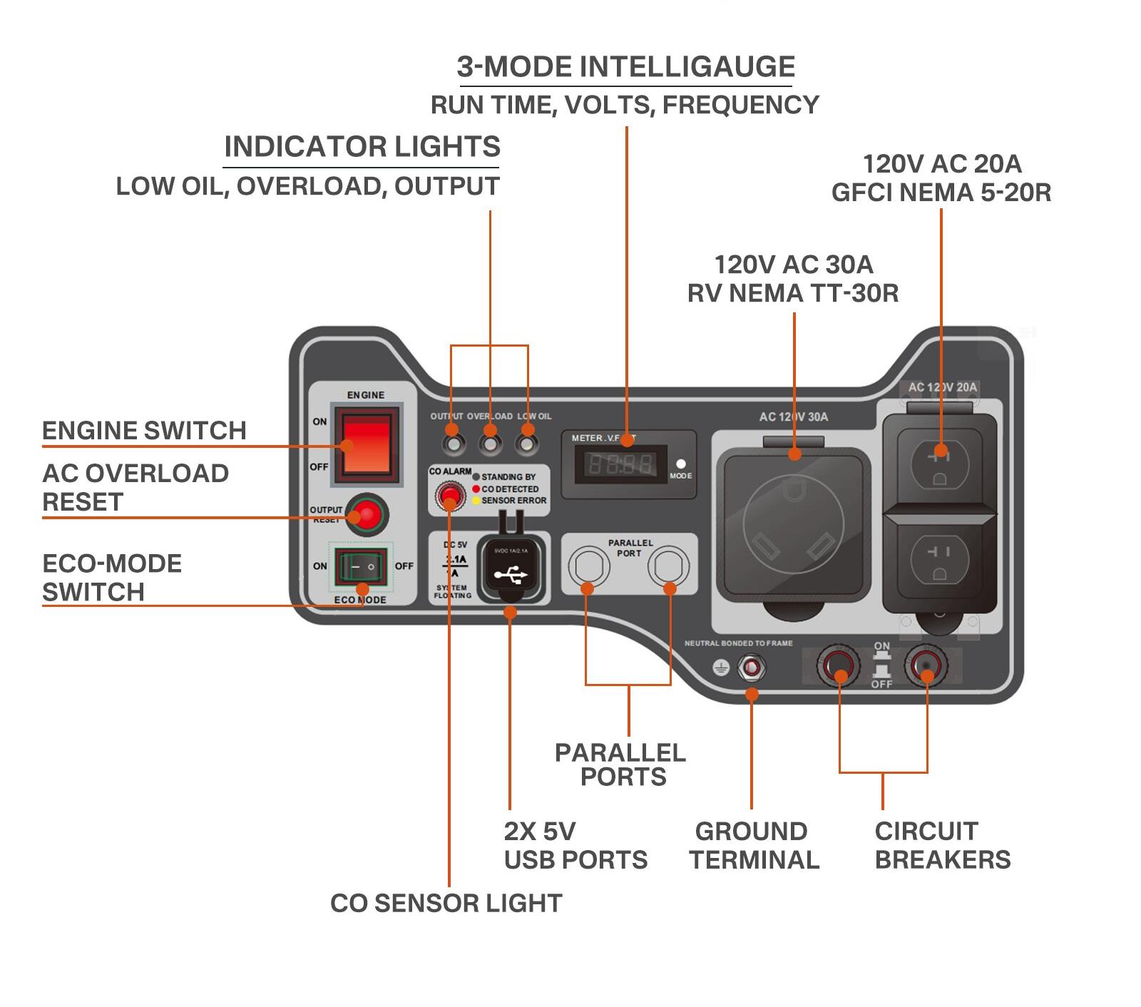 Carbon monoxide (CO) is a colorless and odorless lethal gas. Many modern inverter generators are equipped with CO sensor automatic shutdown technology. When the detector detects that the generator is operating in a closed or semi-closed space (such as near tents or garages), causing the CO concentration to rise, it will automatically shut down the engine to prevent poisoning accidents. This is a crucial safety feature.