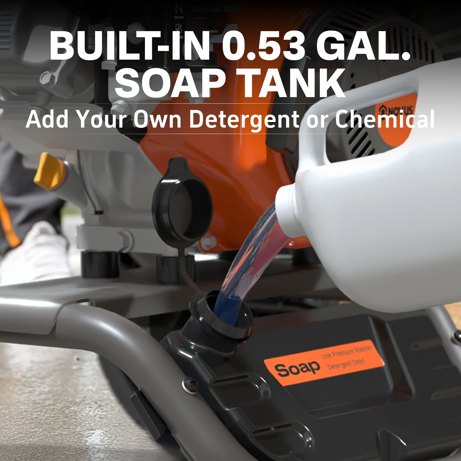 - Built-in 0.53 Gallon Soap Tank to Add Your Own Detergent/Chemical