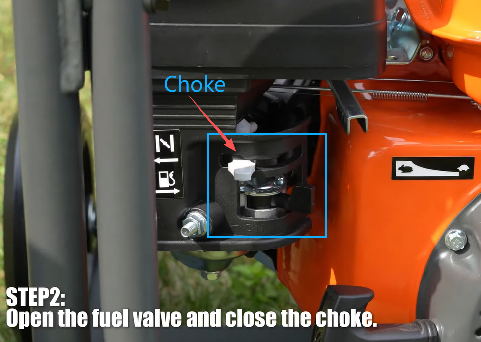 Locate the fuel valve (usually at the bottom of the fuel tank or near the carburetor), and turn it to the “ON” position to ensure that fuel can flow to the engine.