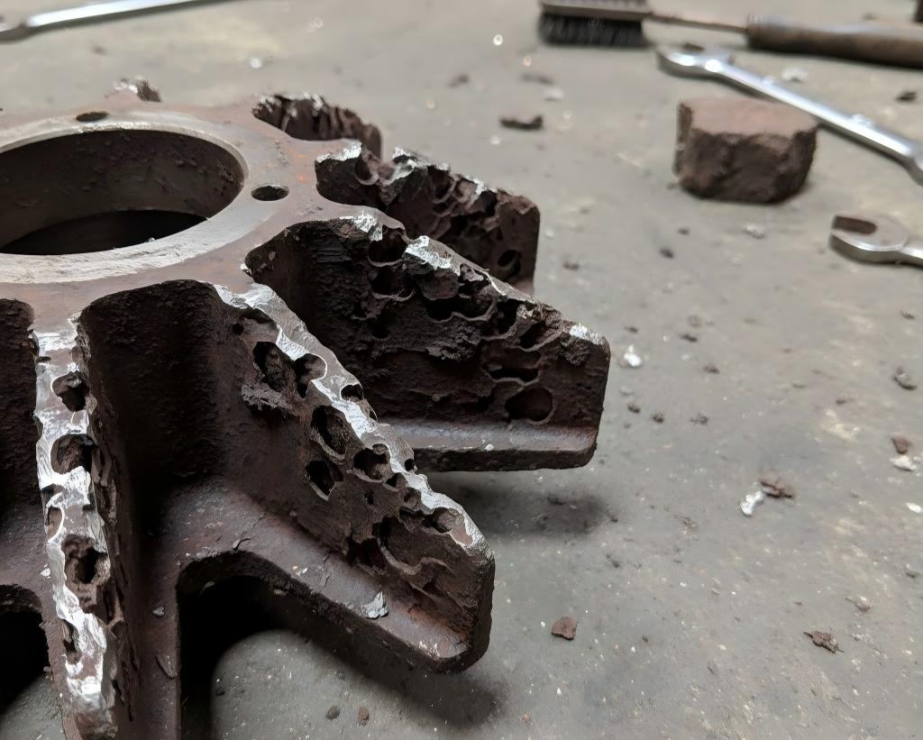 - Honeycomb-like pitting has appeared on the impeller.